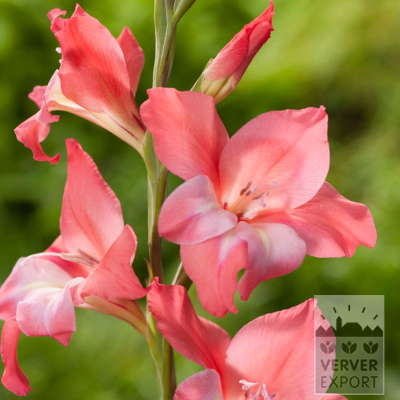 A soft salmon pink colour with a creamy white centre. Short, sturdy Gladiolus.