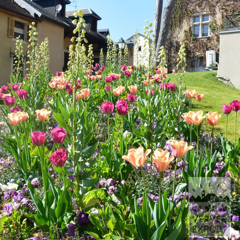 Beautiful colour combination of tulips with the beautiful flowering accent of Fritillaria persica ‘Ivory Bells’. Combine this bulb mixture with a plant cover of pink and purple violets or even with an accent of rose-red Bellis.