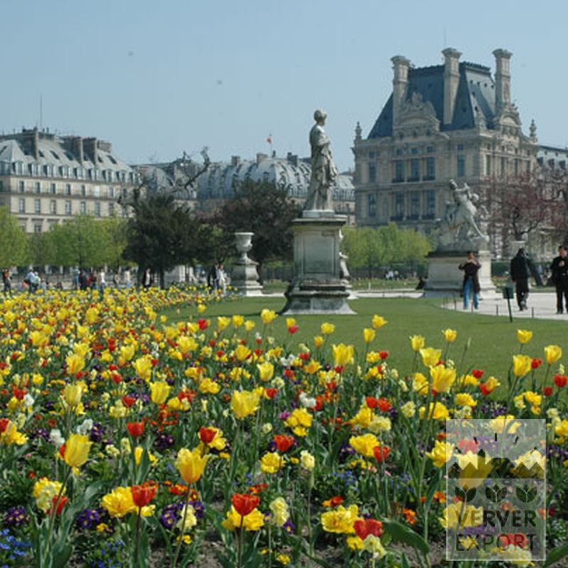 A simple looking composition of four different tulips. But been a success in the catalog for many years! In yellow-orange-red hues, but with different flower shapes so that the tension is pulled pretty.