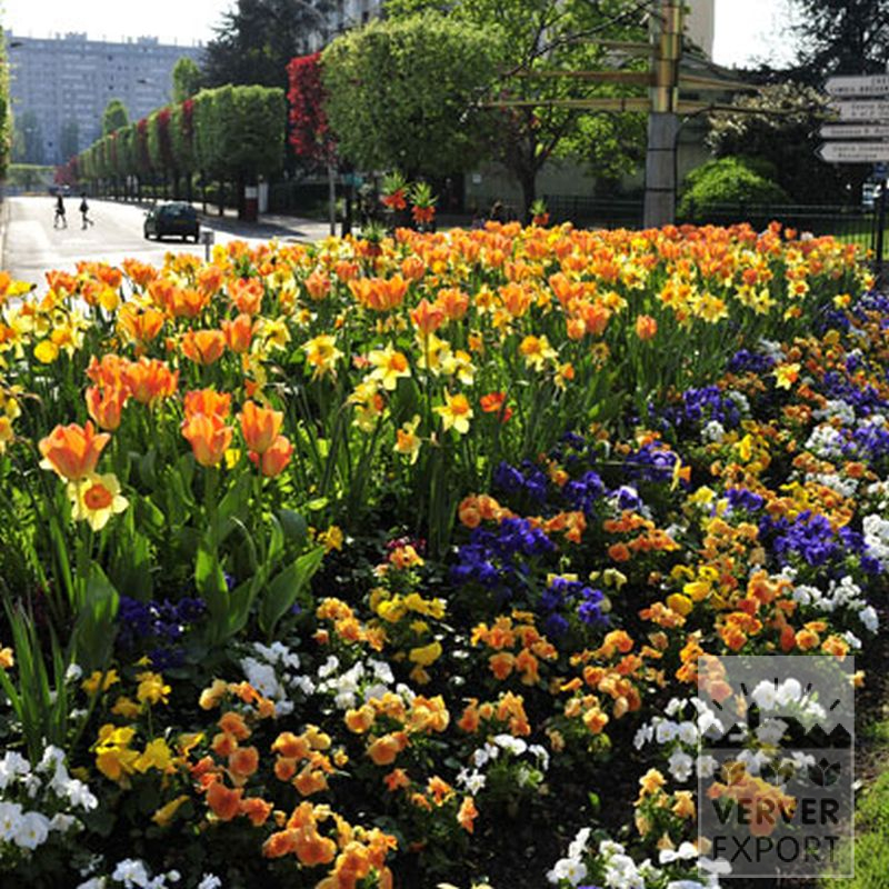 Shimmering orange shades go perfectly with pale yellow as the ‘Ville de Riom’ shows. A crowned mixture of laurels that has been very popular for a number of years now. The key to its success is its big flowers in a combination of wonderful colours.