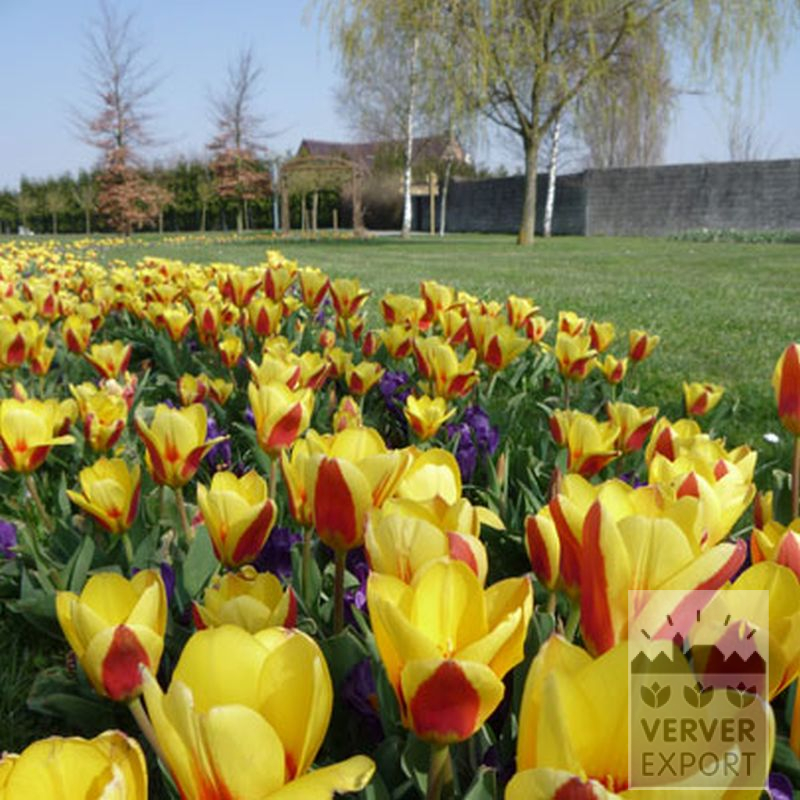 Ravissante combinaison de couleurs lumineuses. Le Crocus continue à fleurir pendant longtemps en raison des températures encore fraîches au début du printemps. Et en prime, encore une belle tulipe rouge et jaune qui vous permettra d’avoir sans problème une floraison pendant 2 mois.