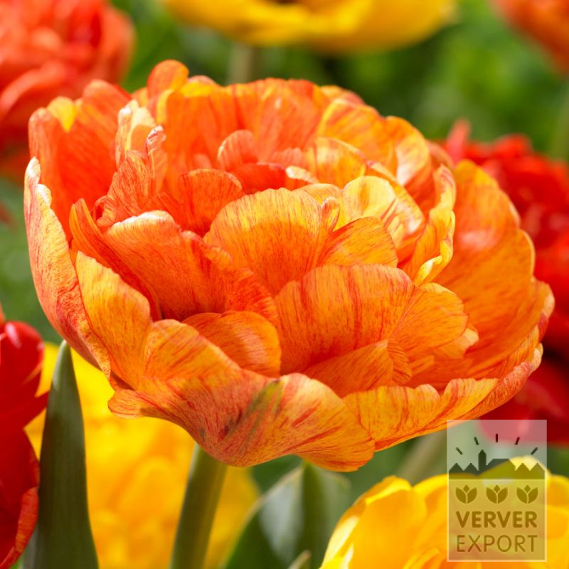 Fleur très double et très originale. Tenue souple. Il n’y a rien qui lui ressemble !