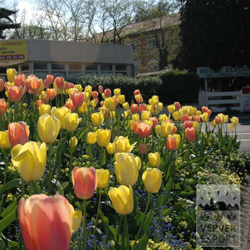 Een ideale combinatie: de mix ‘Sunshine’ en de Darwin-hybride ‘Marit’. Een must!