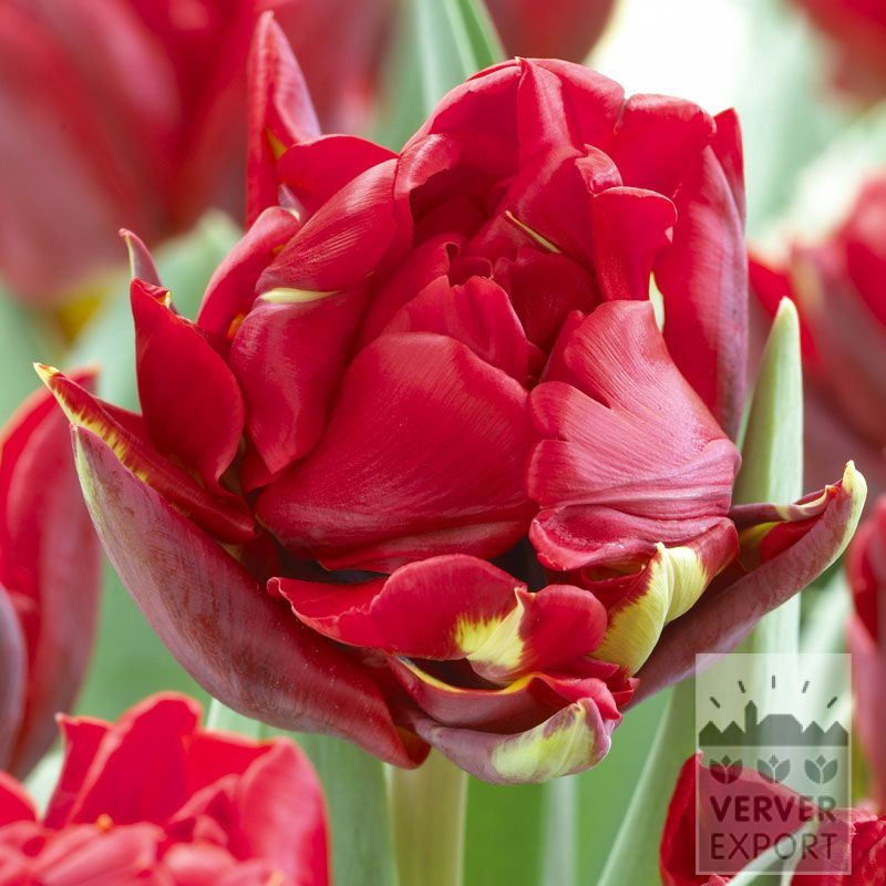 Dit is de eenvoudige, vroegbloeiende tulp ‘Couleur Cardinal’ als een dubbele variëteit. Profiteer van zijn stabiliteit: hij is bijzonder weerbestendig. En natuurlijk is het erg mooi!
