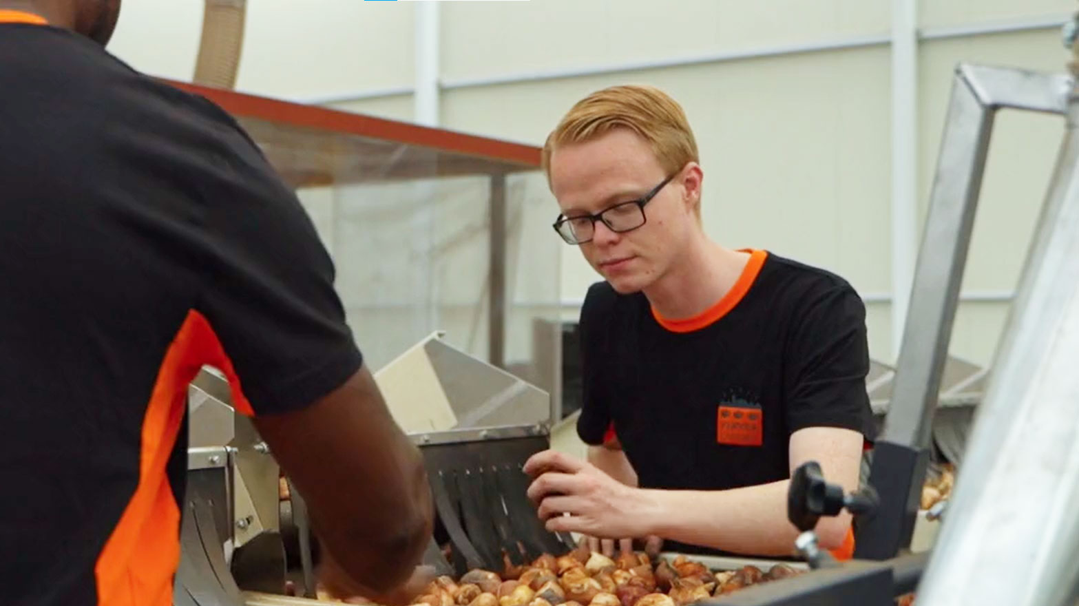 Vanaf begin juli worden de eerste bloembollen bij de productielocatie van Verver Export in Heerhugowaard geleverd. In totaal zo’n 750 soorten van meer dan 300 leveranciers. De bollen worden bij binnenkomst direct gecontroleerd op kwaliteit en grootte. Vanaf het moment dat ze op locatie worden gezet, is er nog maar één ding wat telt: ventilatie!