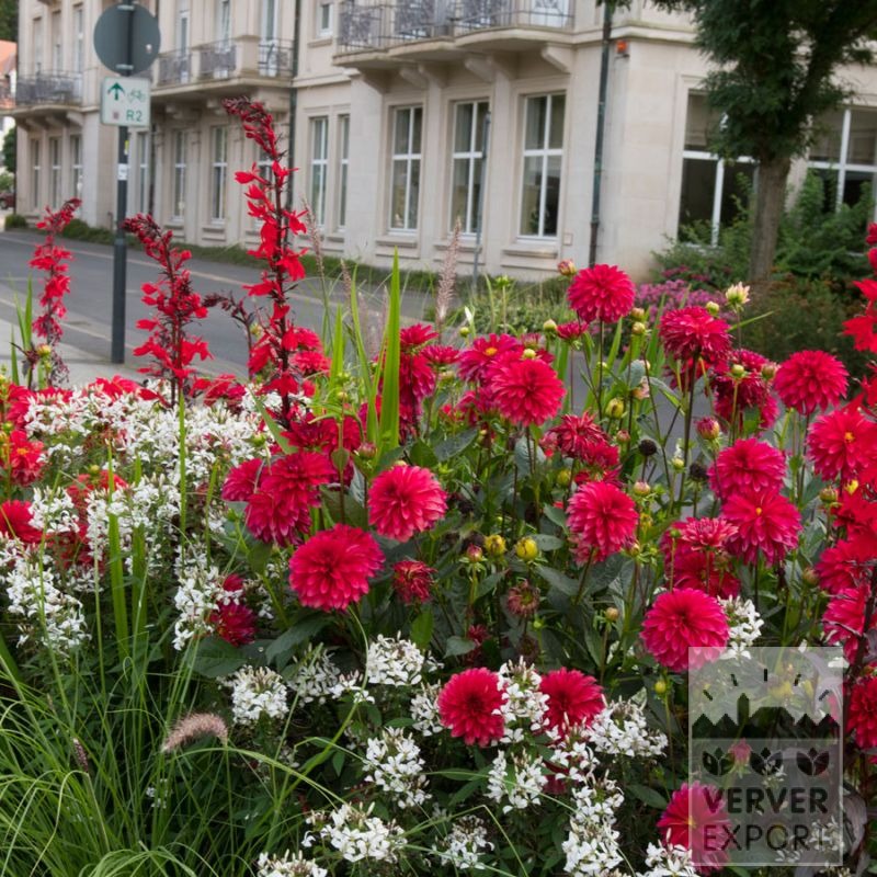 White with fantastic red accents created with different flower shapes. A fantastic color combination that’s new in our concept series. Let us surprise you!